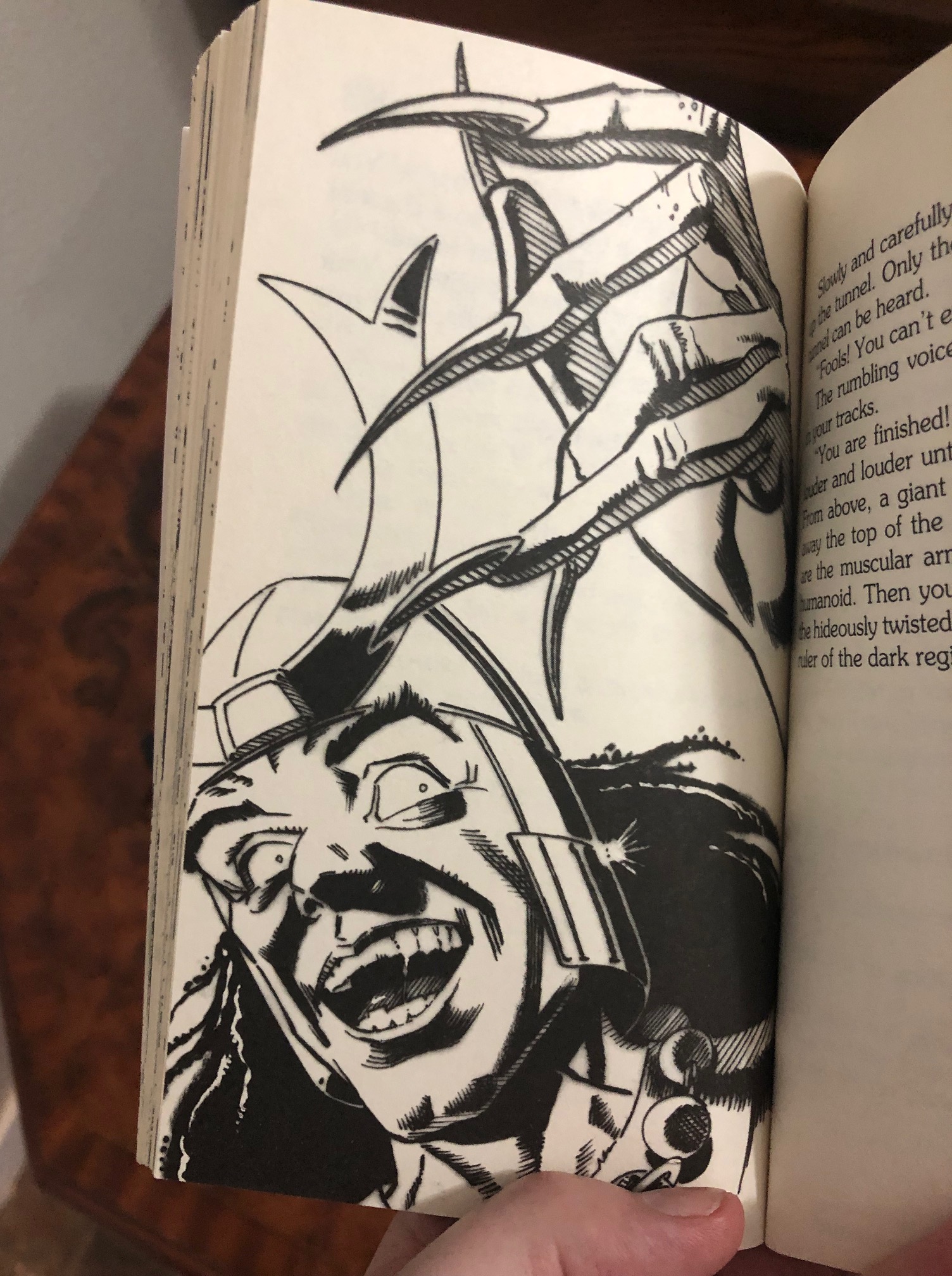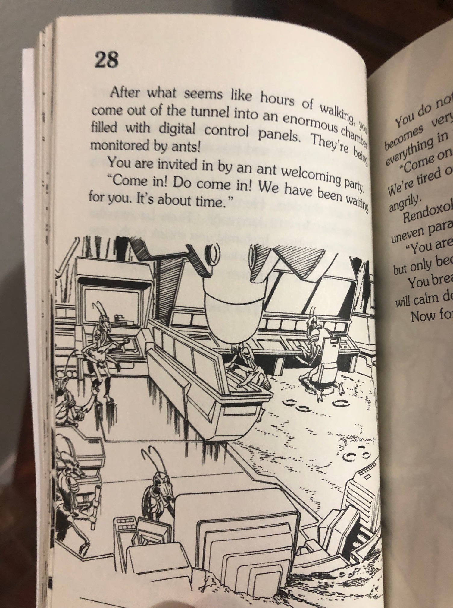Another chapter describes the ants forming a ladder with their bodies for a non-ant character to climb, described as an “ant-ladder”. The illustration shows the dude climbing a literal ladder! I guess those mistakes happen when you’re paid to crank out art for a children’s book overnight.