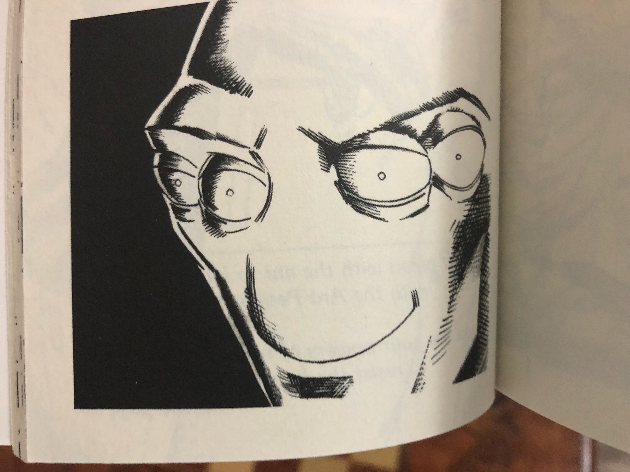 There are times when it misses, though, but not because of the drawing quality. More like “hilarious misinterpretation.” One chapter describes the martian dude smiling at his friend as he waves goodbye, while the accompanying illustration is a closeup of said four-eyed martian leering at the reader like he’s about to kill them in their sleep.
