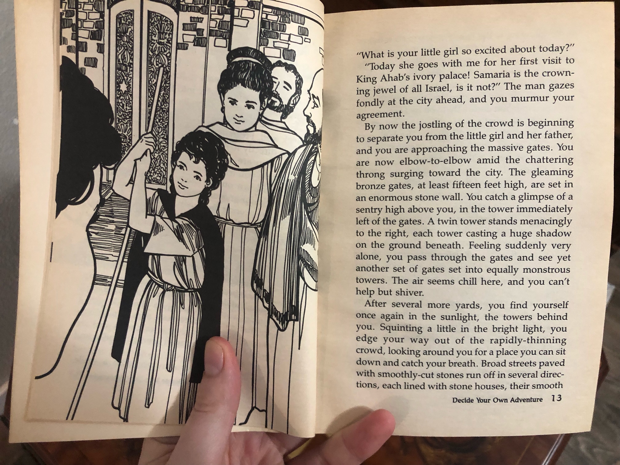 But there are a lot of moments where you make a choice thinking you’ll get to hear or see interesting things, only to miss out at the last minute and have to take a detour to another area. The times you actually get to see stuff happen is usually pretty atmospheric and intriguing, so these segments were always a huge letdown. Don’t tease me with a showdown between the underdog of Israel and the evil despots destroying it if you aren’t gonna deliver, Susan E. Hilliard! Even when you finally get to see Elijah and Ahab confront each other, it’s anticlimactic.