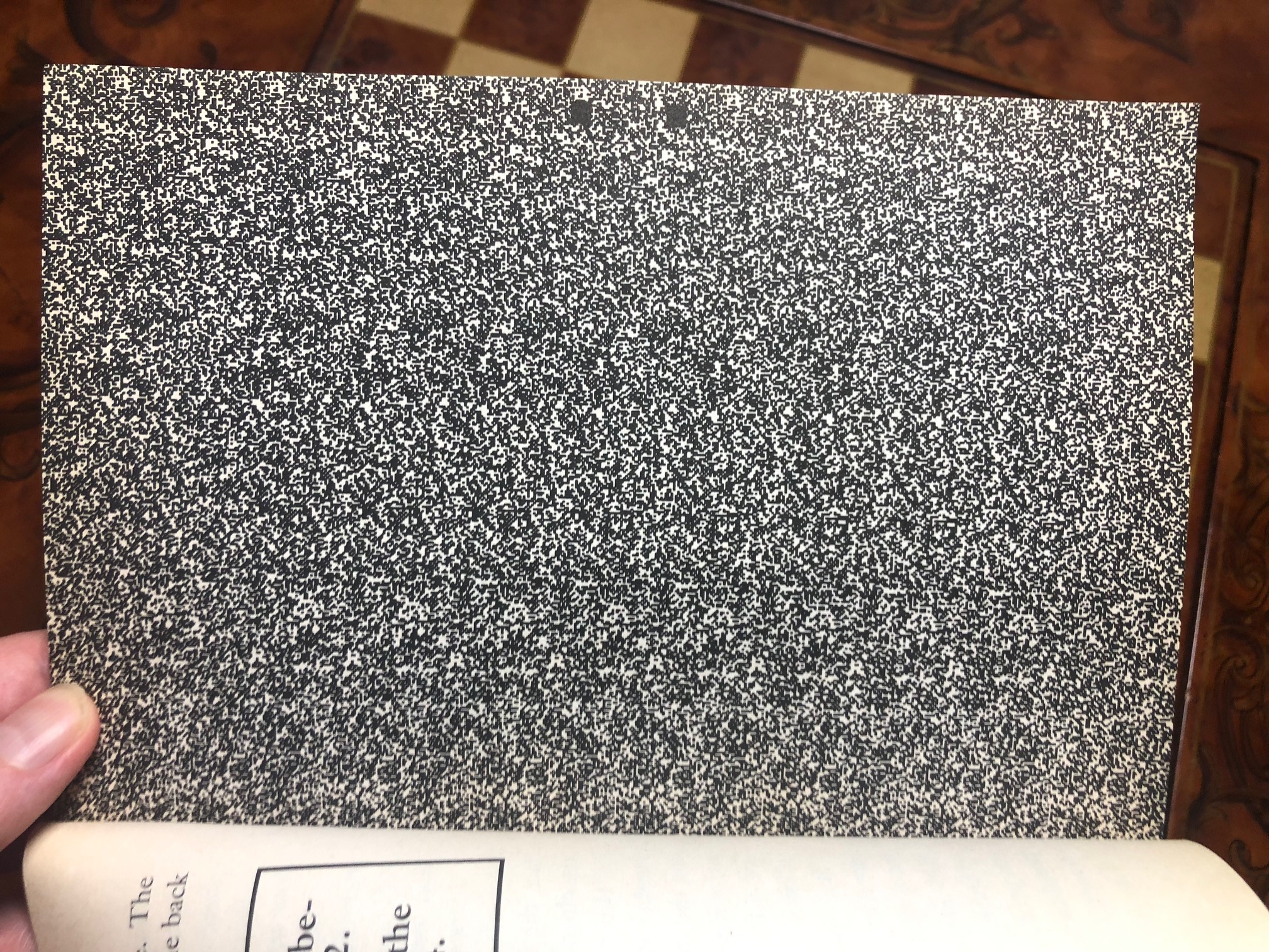 Okay, so, full disclosure: I haven’t looked at a stereogram correctly since I was a kid, and even then it was a crap shoot at best (as in the dice game “craps,” get your head out of the gutter). Turns out your mileage may vary with this sort of thing. Some people are able to see them, and some ride the struggle bus. If you read this book yourself, you may fare better than I did, or you may just rely on the answer key in the back.