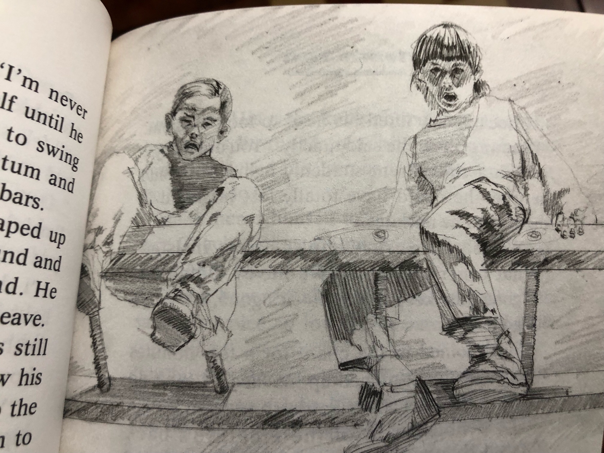 SUMMARY: Brent, Chunk, Patrick, and Dan take to the monkey bars on the playground after school every day for a quick bout of Lone Survivor, where they hang from the monkey bars and use their feet to knock their opponents to the sand below. Each time they play, they put a new spin on the game to make it interesting, but this time they’re bored and are struggling with ways to reinvent their game. Patrick, the most imaginative member of the group, proposes that a giant salamander lurks under the sand beneath the monkey bars, and every hundred years or so it awakens and hungers for flesh. In short, if you fall off the bars, you have to bury yourself in the sand and play dead until the game is over.
