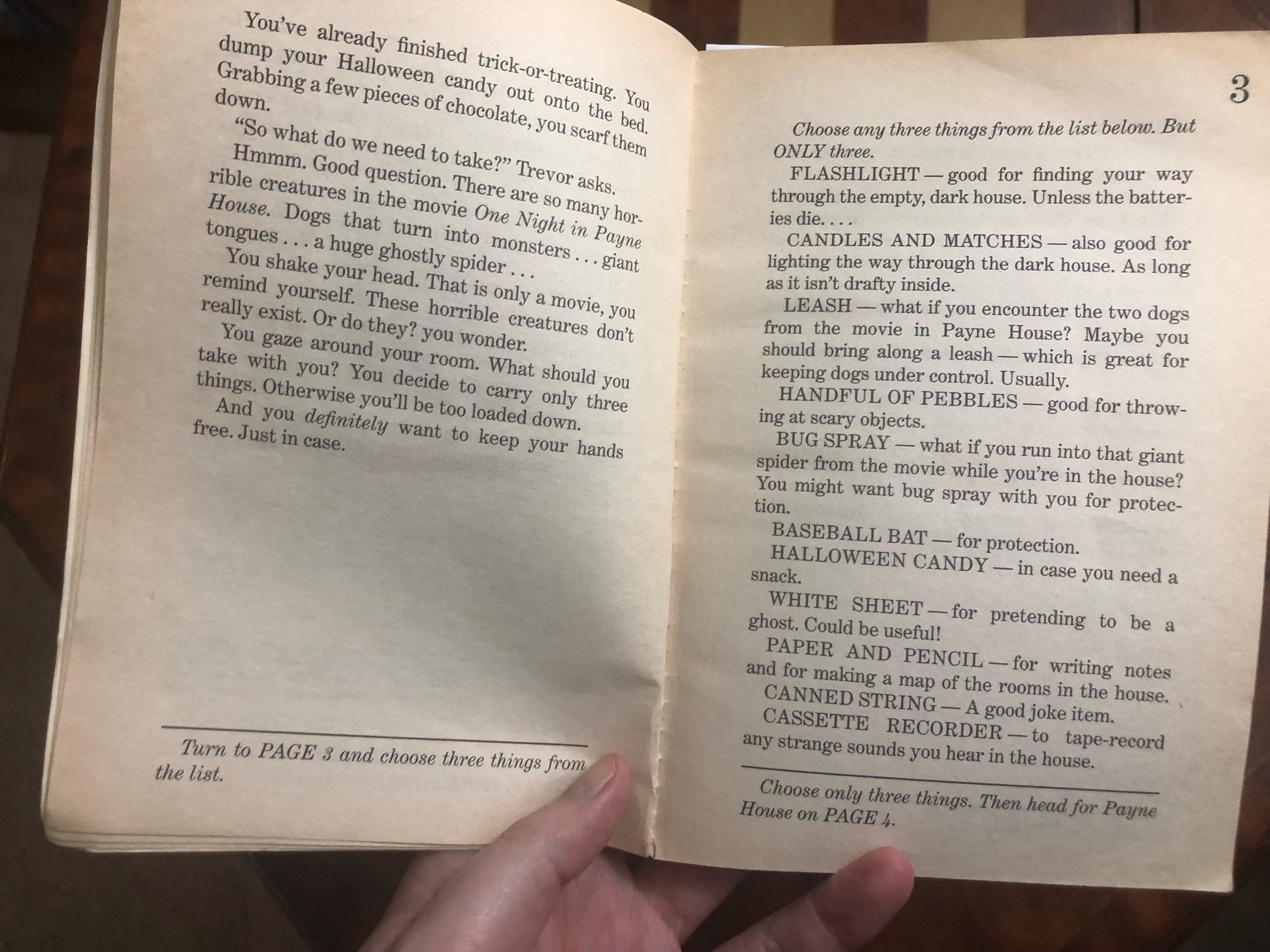 Give Yourself Goosebumps was the gamebook division of the Goosebumps franchise, where longtime readers could finally decide what happened in the story. One Night in Payne House is part of the “ultimate challenge special edition” books, where I guess the big gimmick is the “one true path” design philosophy and maybe inventory keeping, although the inventory aspect itself is really simple: you get to choose 3 items from a grocery list in the first chapter, and most of them are useless.