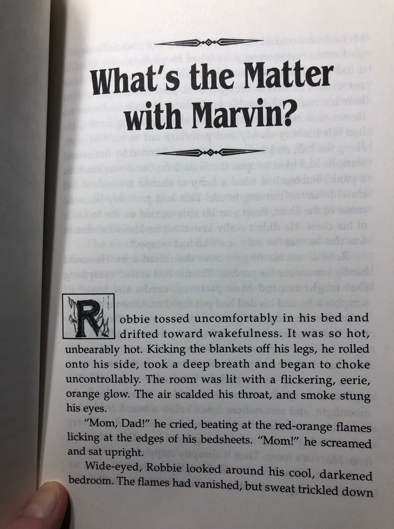 SUMMARY: Robbie has moved in with his Uncle Lester and cousin Marvin after a tragic fire killed his parents and left him with a scar on his chest. He still has nightmares about the fire, but even more troubling is Marvin, who is aloof at best and hostile at worst, and Robbie can’t understand why. Uncle Lester is weird, too, and keeps hovering over Robbie as he does simple things like eating breakfast. One day Marvin has a sudden outburst at Uncle Lester, demanding that he tell Robbie the truth so he doesn’t find out the hard way. Neither Marvin nor Uncle Lester explains what this means.