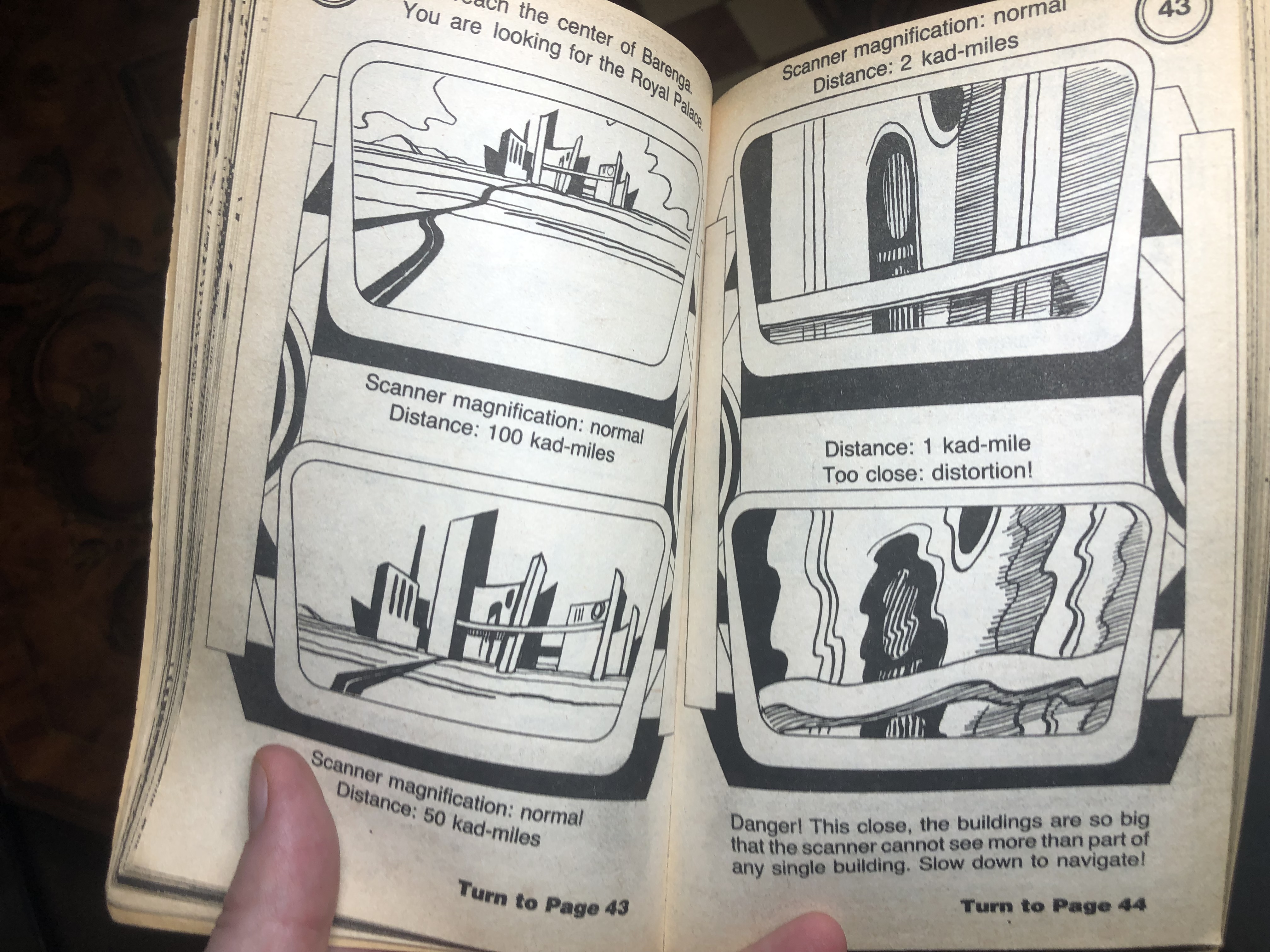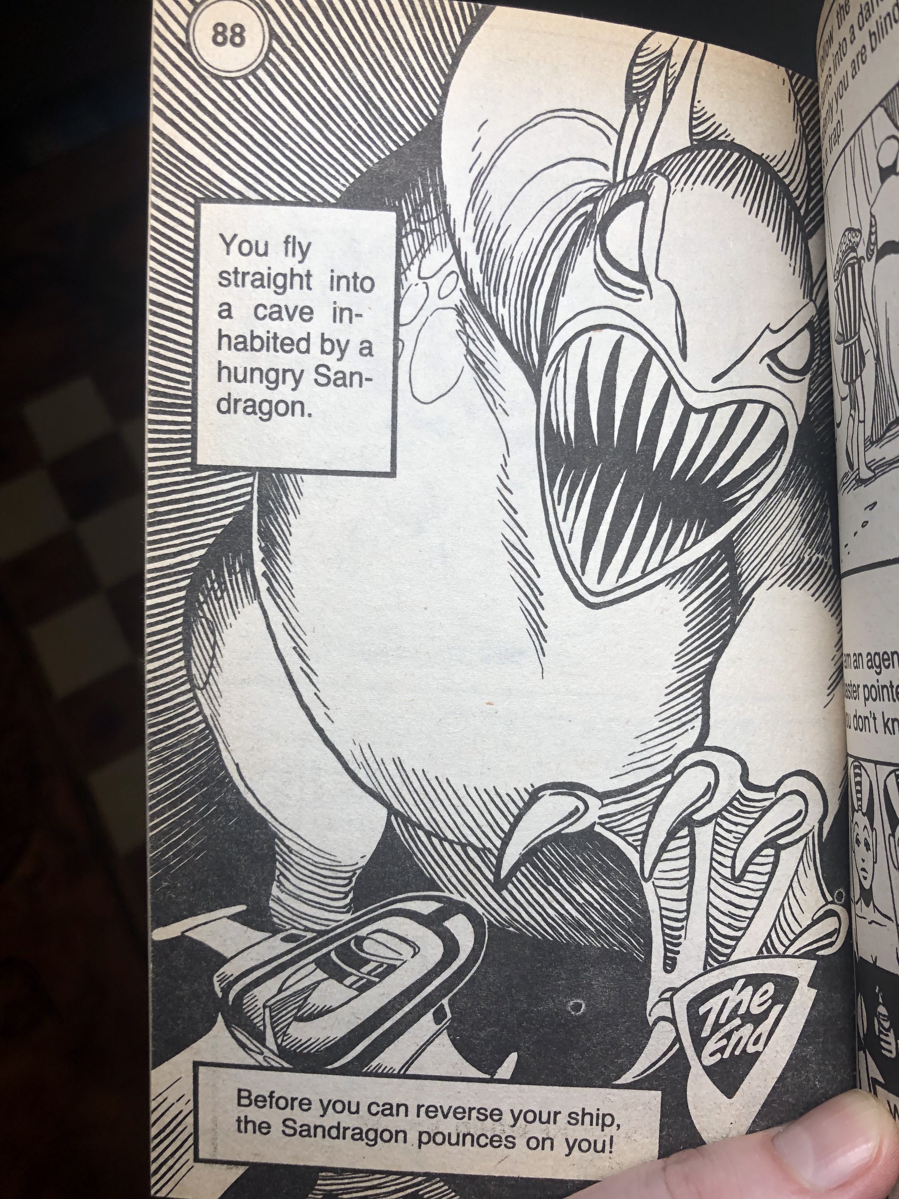 But then there are the pointless exercises and missed opportunities. The first image is an example of a non-game, where I’m given a maze that I can complete, yet the outcome is fixed: whether I make it through or not, I still turn to Page 25 to watch my ship get destroyed, so it feels like a waste of time. I see no reason why I couldn’t have been given the option to get out of this one somehow. There are several examples of this throughout the book and with so many generic multi-use bad endings it seems strange that there were no options offered in these situations.