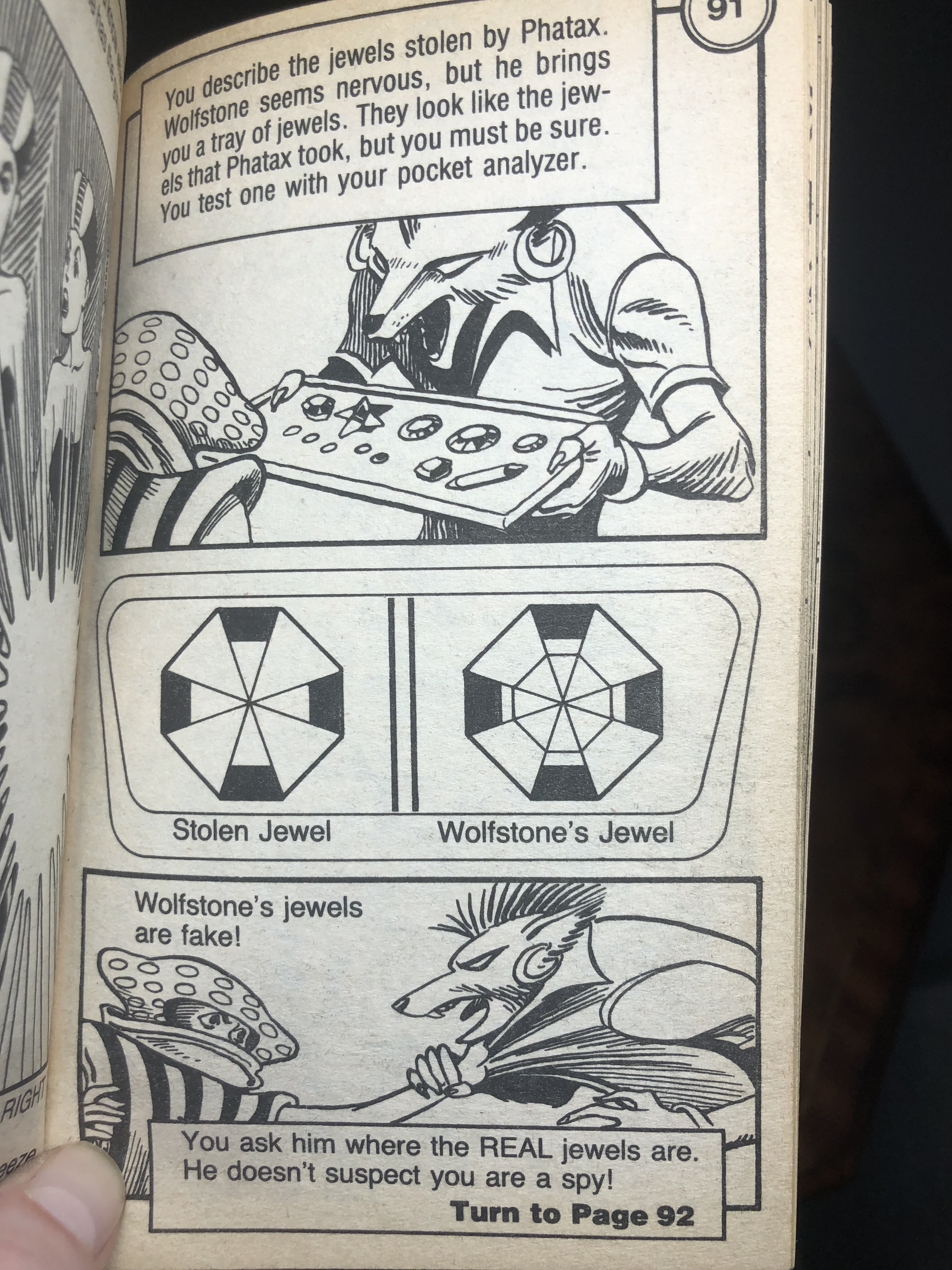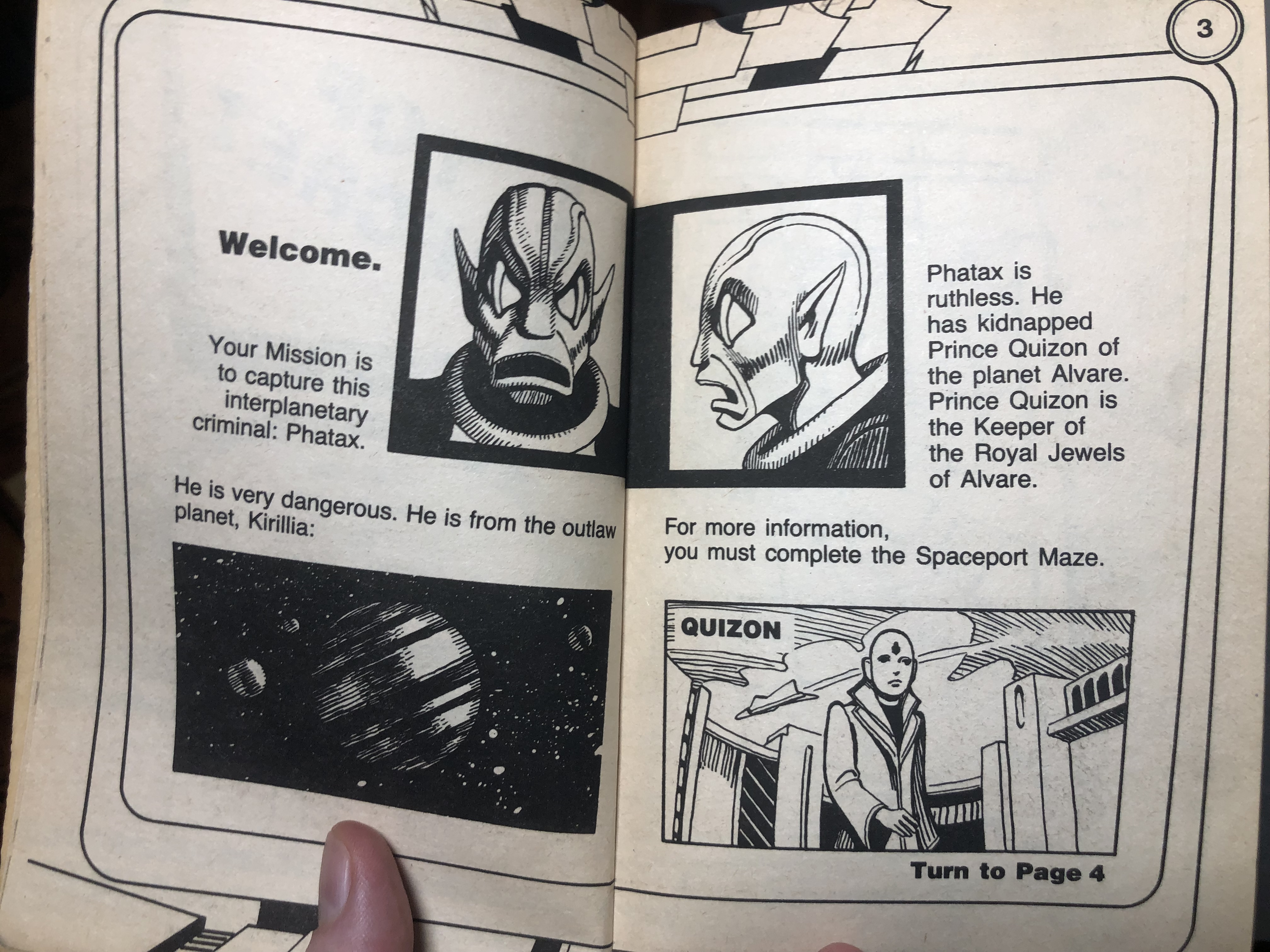 In our very first adventure as an Interplanetary Spy, we are to hunt down and capture Phatax the Kirillian, and recover the prince he’s kidnapped, who is keeper of the royal jewels. We are quite literally being sent after a jewel thief. I’ll grant you, if this is technically our first outing as an Interplanetary Spy, they’d probably want to give us a relatively easy assignment, so I can’t fault them there. Also, the jewels turn out to be more than just jewels later in the story, so it’s not like we’re just out to recover the Mona Lisa.