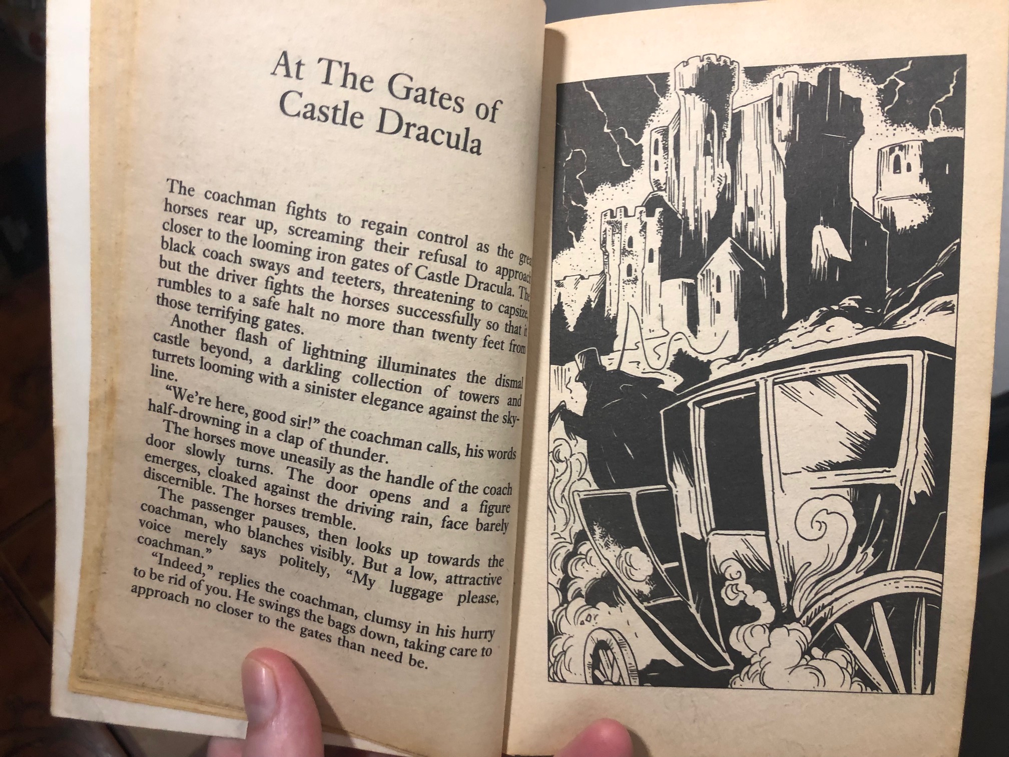 Horror Classics is a short-lived horror gamebook series—a whoppin’ TWO volumes were produced before it went kaput. Each book is based on a work of classic horror literature, and the gimmick is you can play as the hero OR the monster. The series follows the Fighting Fantasy trend of solo RPG books: you jump between countless paragraphs describing the action while occasionally fighting enemies, collecting goodies, and trying not to get hopelessly lost.