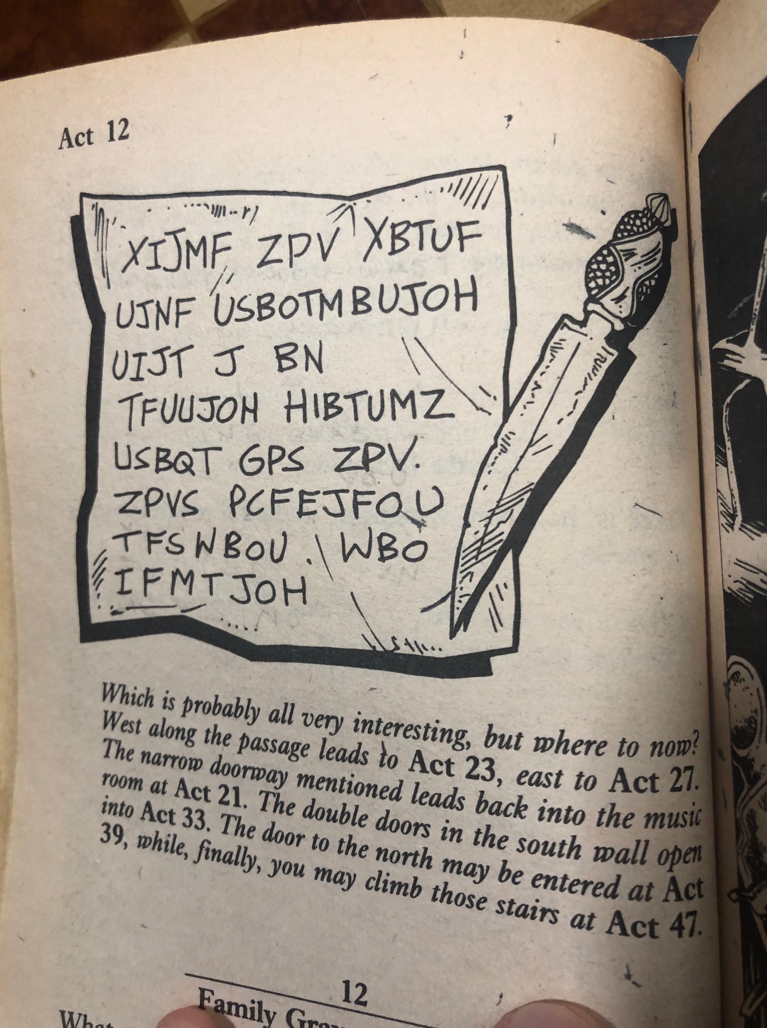 So I got my character rolled up, and I was fully immersed in this spooky castle setting, and I was excited to get started. And that’s where the book rapidly took a turn for the Goosebumps.