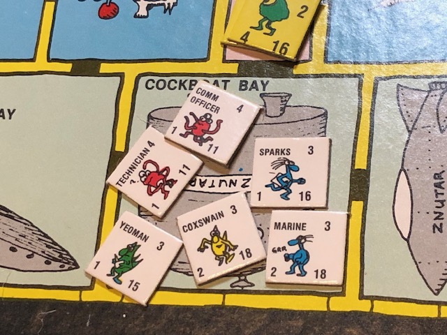 Every member of the crew has a unique name, rank, and illustration for its chit, and each crewman starts the game in one of several preassigned rooms on the spaceship. Once the crew is in place, the monsters get to spawn in a random part of the ship–the monsters come in the form of Eggs which can grow into Babies, which can grow into Adults, which can lay Eggs.