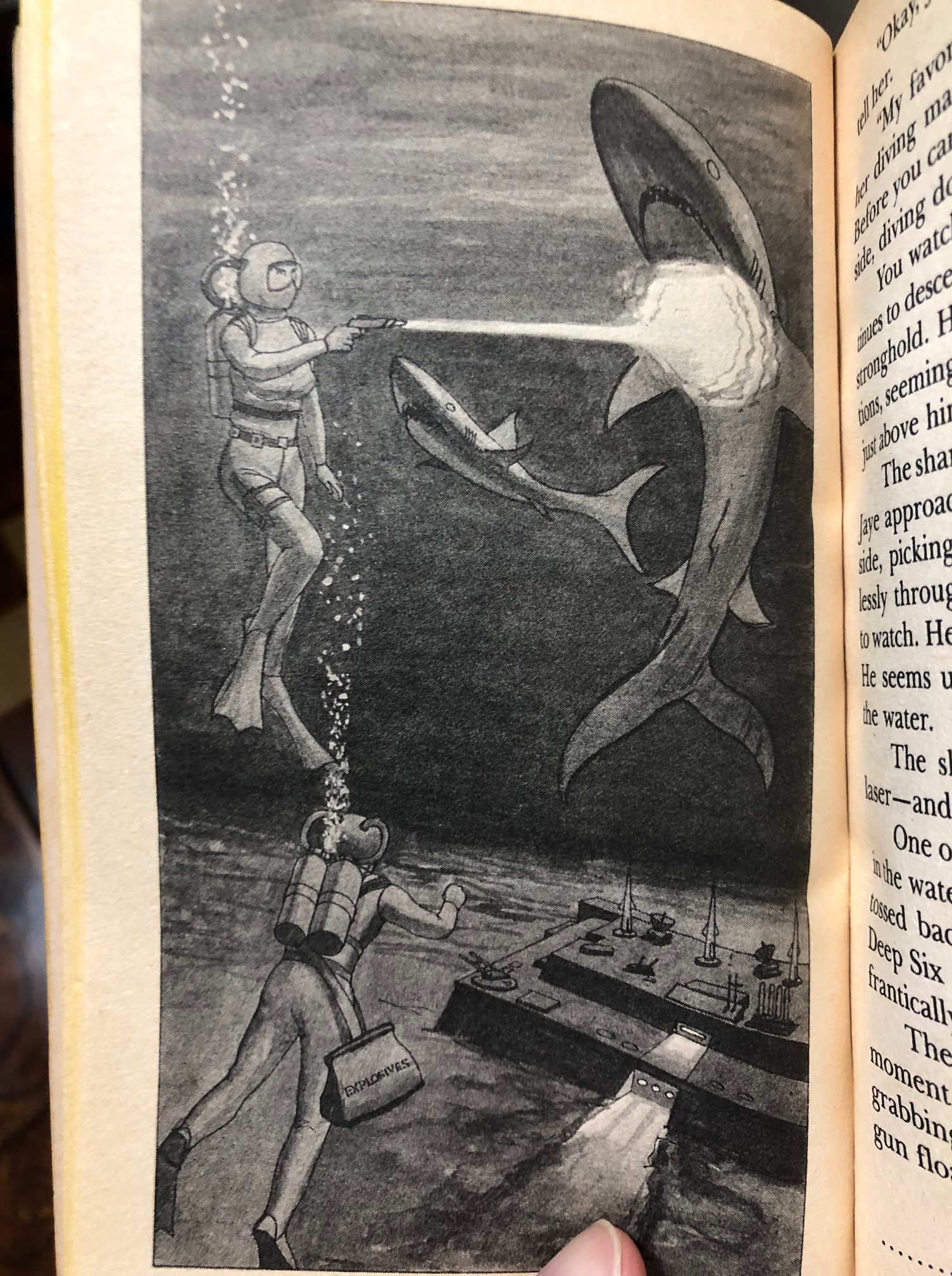 Deep Six: “No, his idea was to drop bombs on it. Mine is to swim down there myself and plant a bomb.”