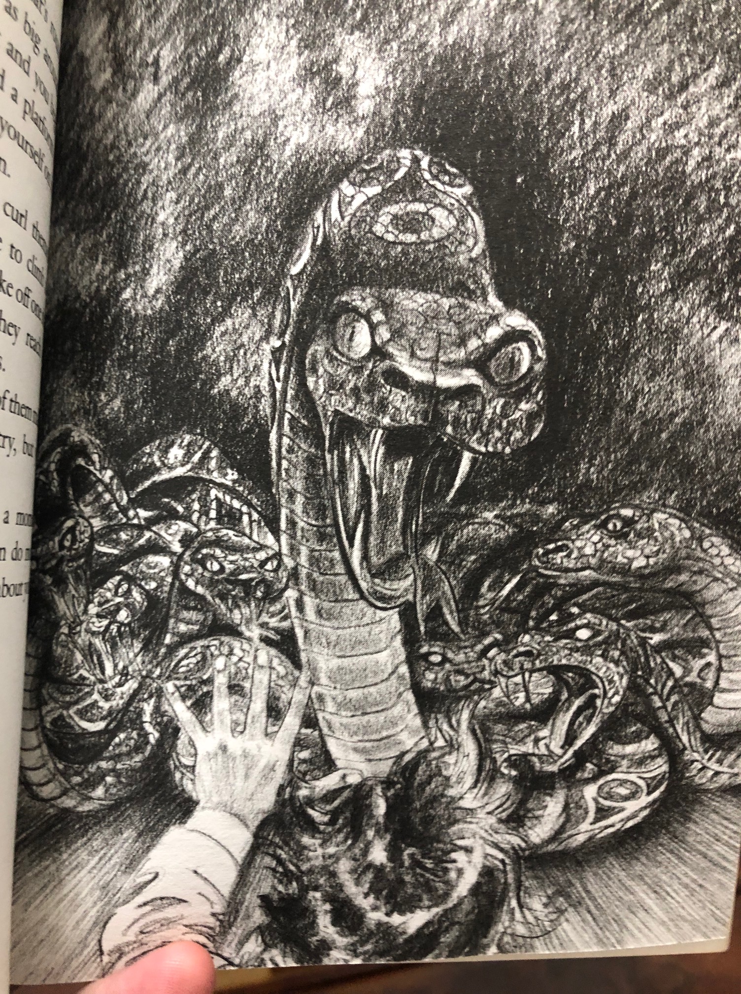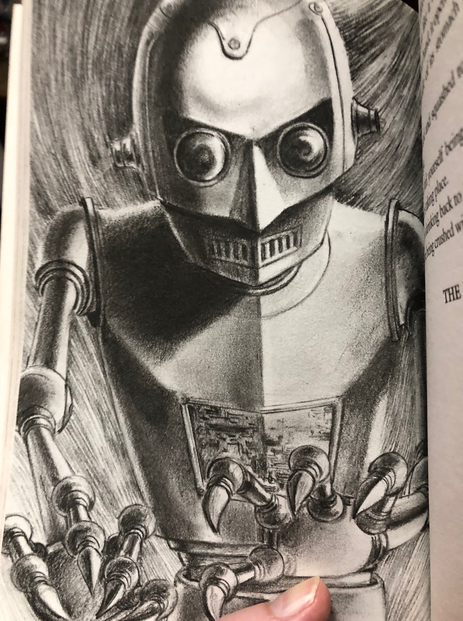 The artwork is next level, too. I think the artist is Stanley S Drate, because he gets the “designed by” credit for this book, but there’s no credit explicitly for artwork. Whatever. Those snakes are terrifying to behold. So is that robot who might otherwise strike one as endearing. And is that alligator being puked up by a ghost?!