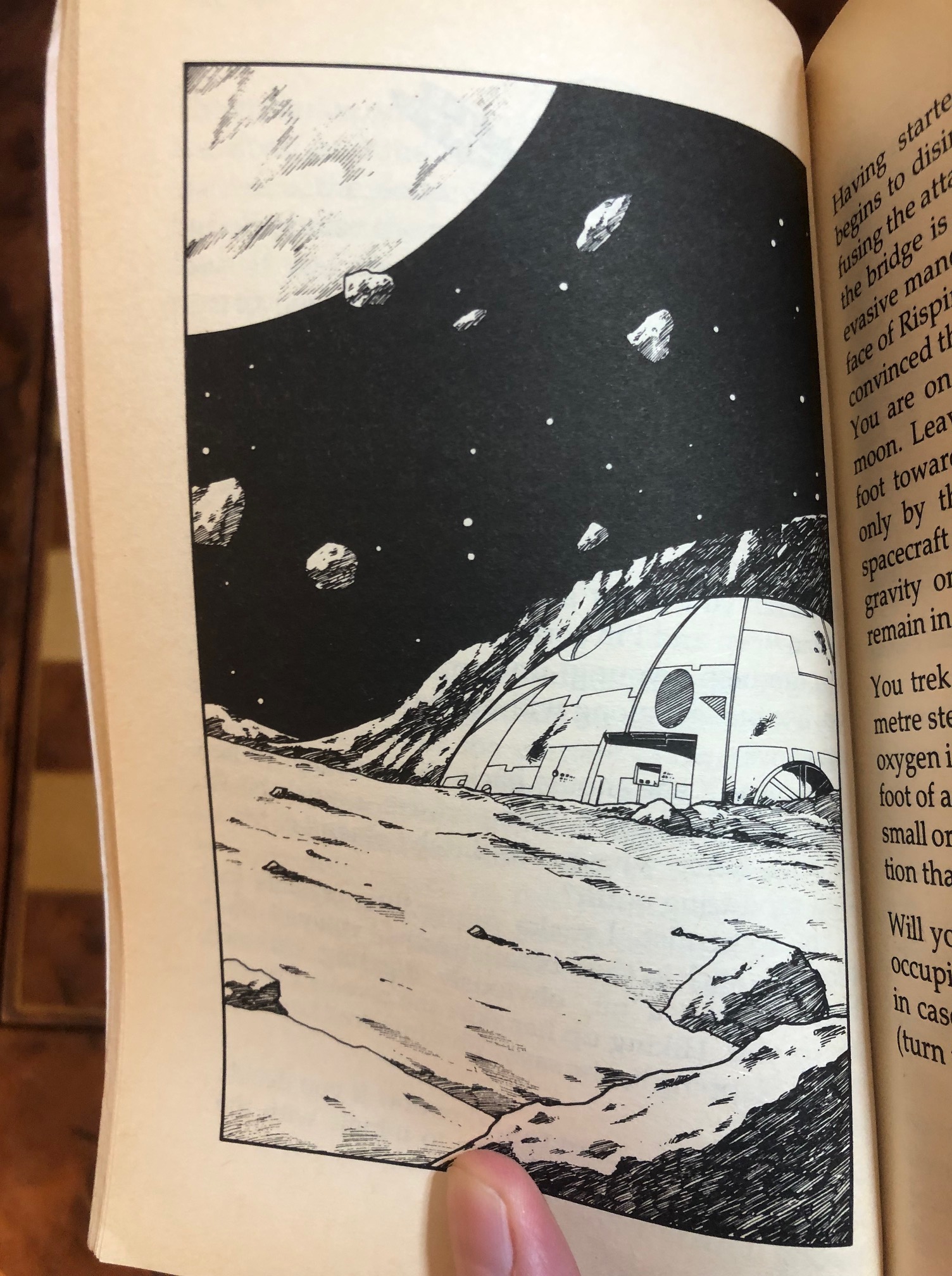 My first ship had WS 11, so I pretty much destroyed anything I came across…but it had Shields 3 and went down in a blaze of glory near the end of the story. I just roleplayed that I crash-landed in the bad guy’s hangar, and continued reading. There was a perfectly good ship in the hangar already. No reason why I couldn’t borrow that one to fly home, right?